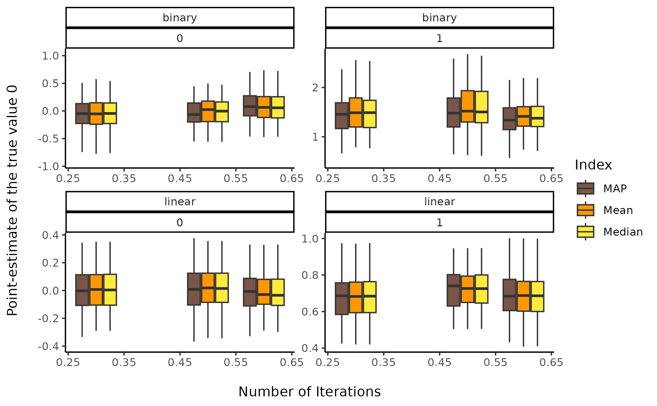 values = c("Coefficient" = "#607D8B", "MAP" = "#795548", "Mean" = "#FF9800", "Median" = "#FFEB3B"),