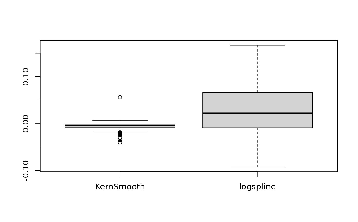 boxplot(data[c("KernSmooth", "logspline")])