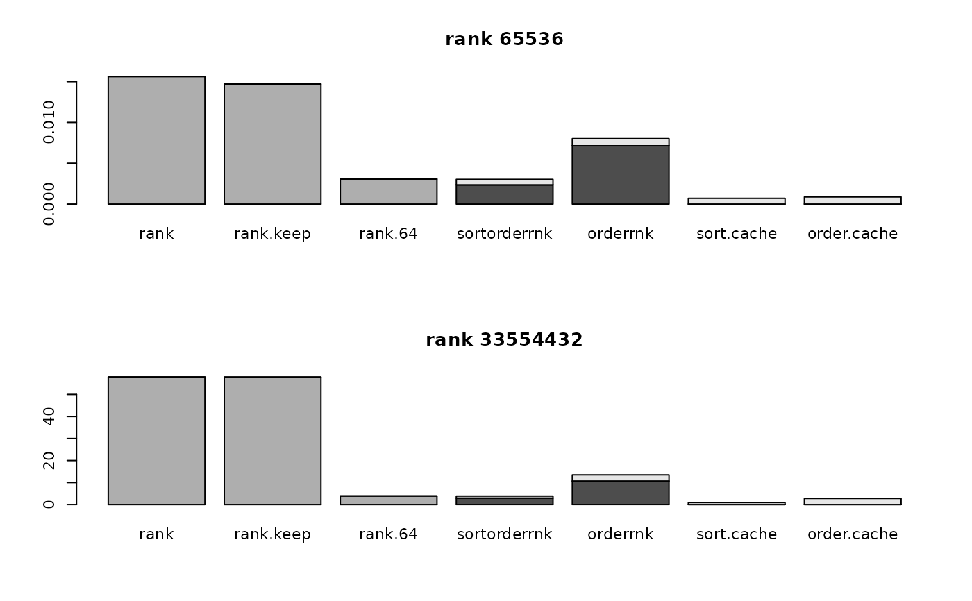 benchmark64(nsmall = 2L^16L, nbig = 2L^25L, timefun = repeat.time)