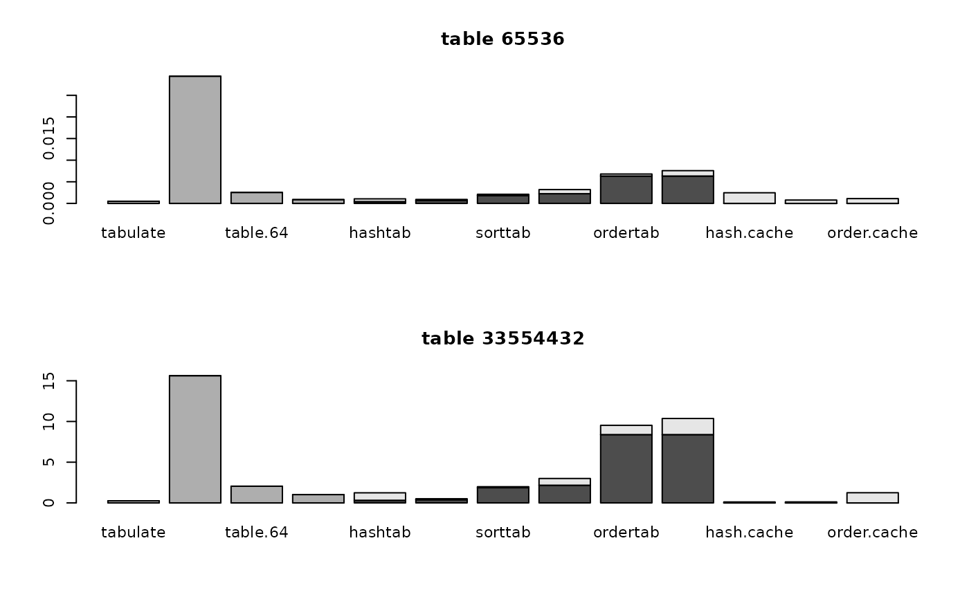.. ..$ : chr [1:13] "tabulate" "table" "table.64" "hashmaptab" ...