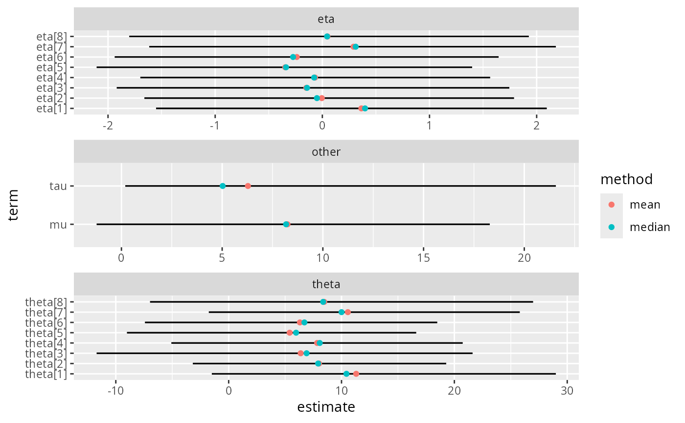 td_median <- tidy(rstan_example, conf.int = TRUE, robust = TRUE)