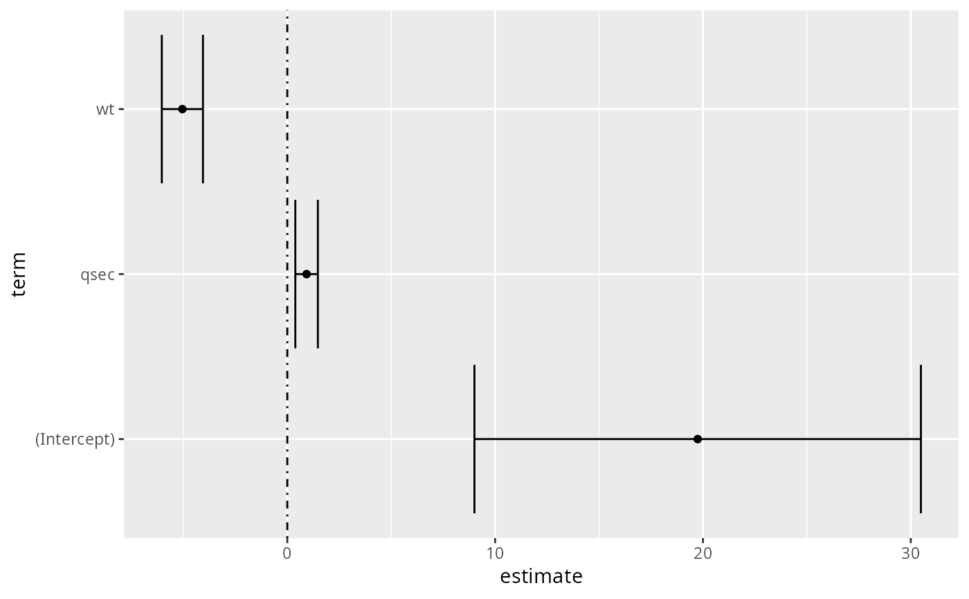 mod <- lm(mpg ~ wt + qsec, data = mtcars)