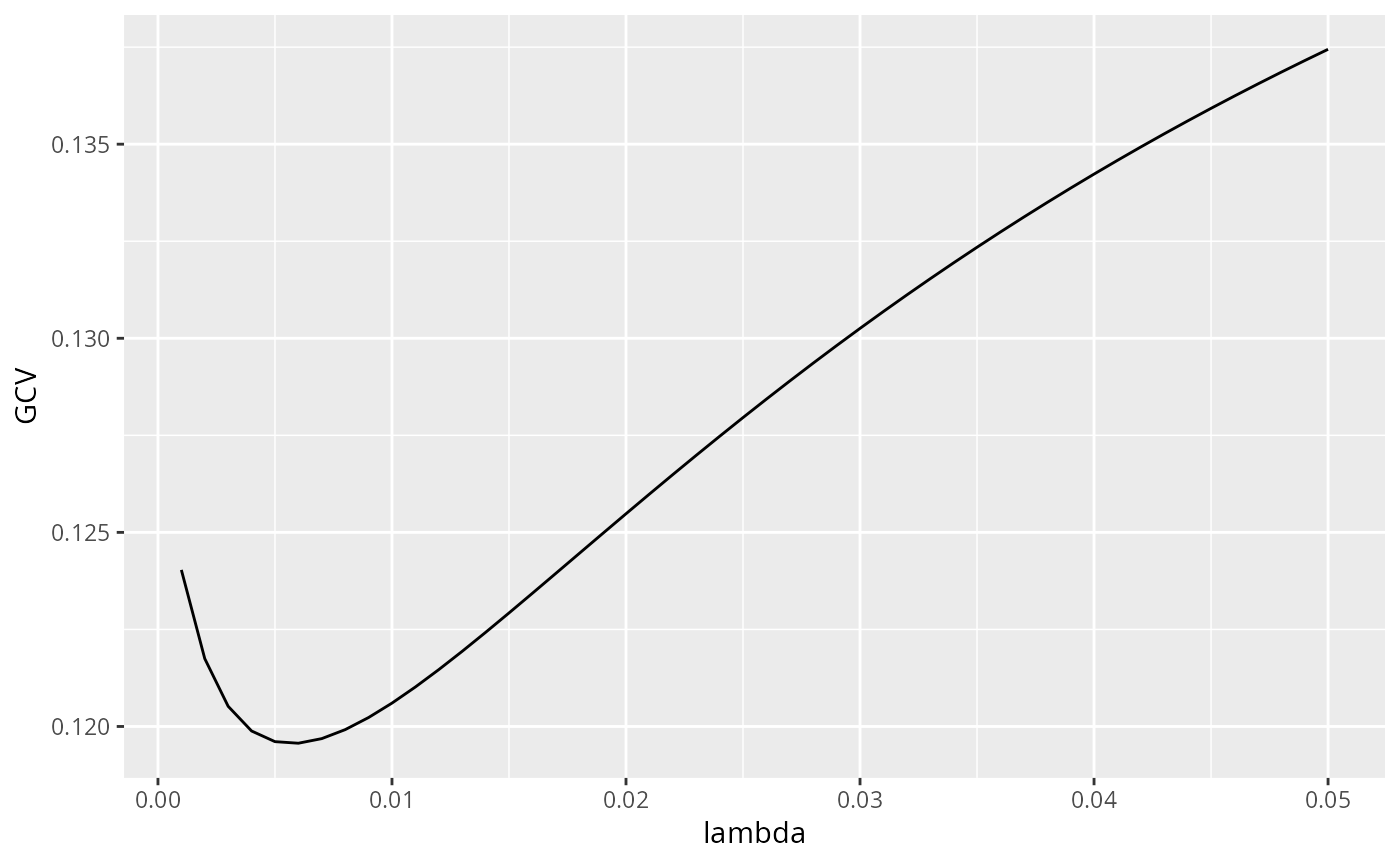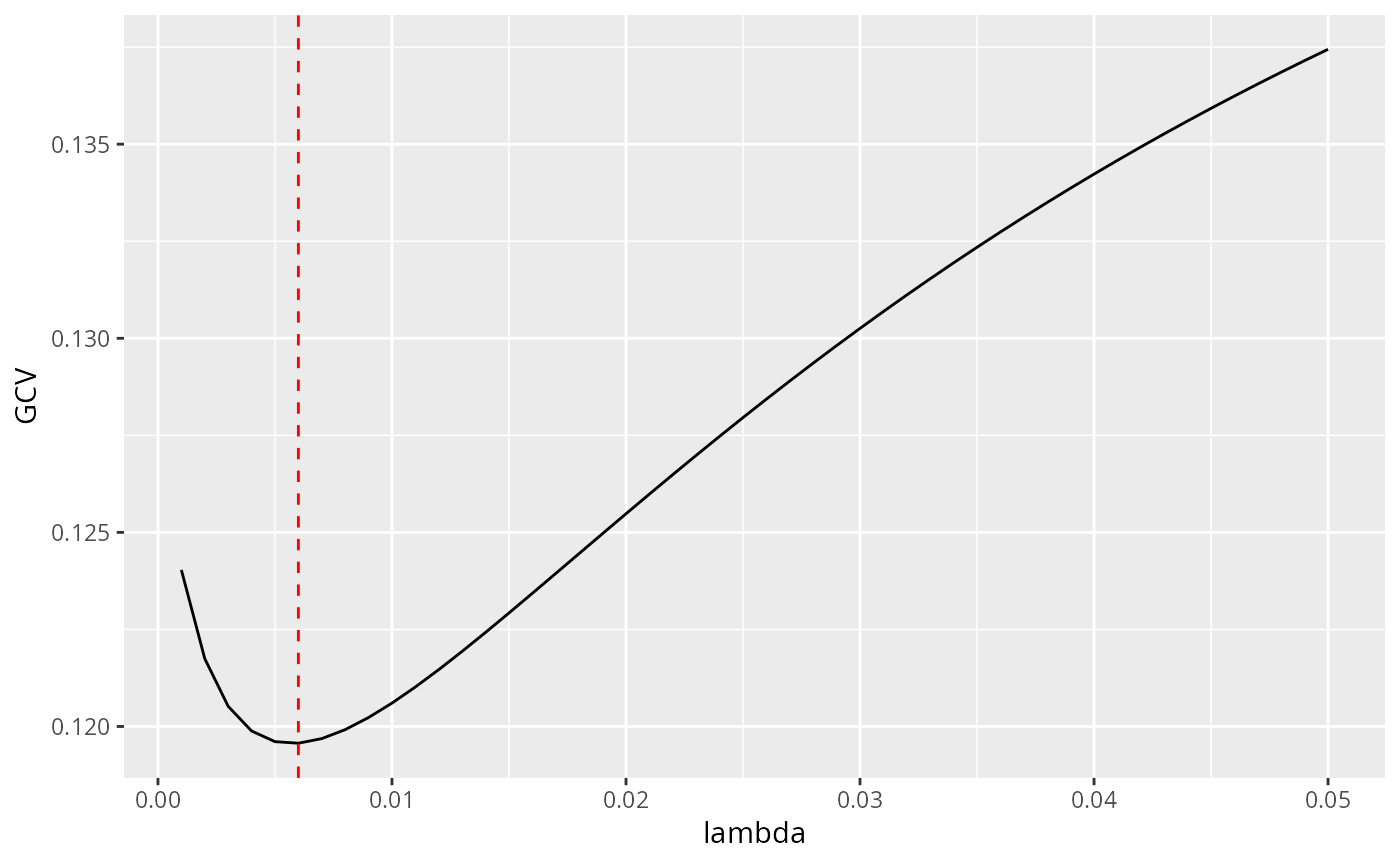 geom_vline(xintercept = g2$lambdaGCV, col = "red", lty = 2)