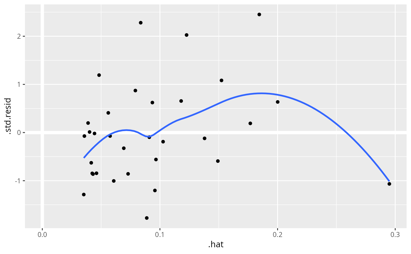 #> # .hat <dbl>, .sigma <dbl>, .cooksd <dbl>, .std.resid <dbl>