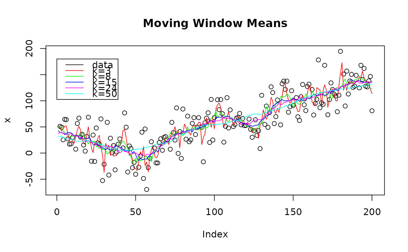 “for(j=(1+k2):(n-k2)) y[j]=mean(x[(j-k2):(j+k2)])”.