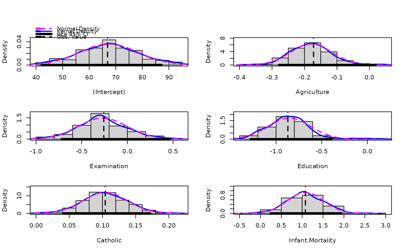 betahat.boot <- Boot(m1, R=199) # 199 bootstrap samples--too small to be useful