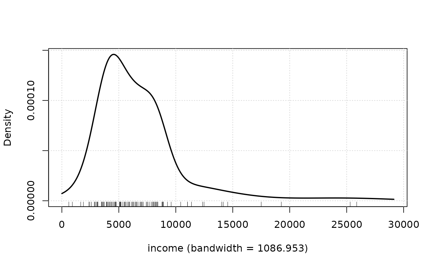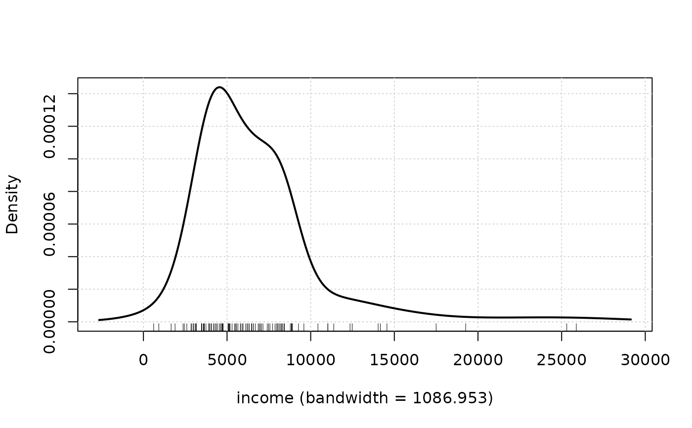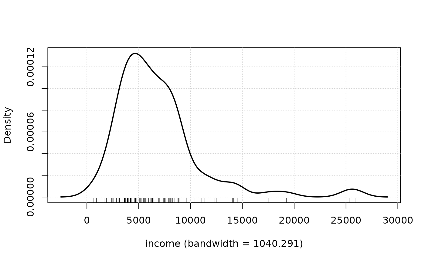 densityPlot(~ income, show.bw=TRUE, data=Prestige)