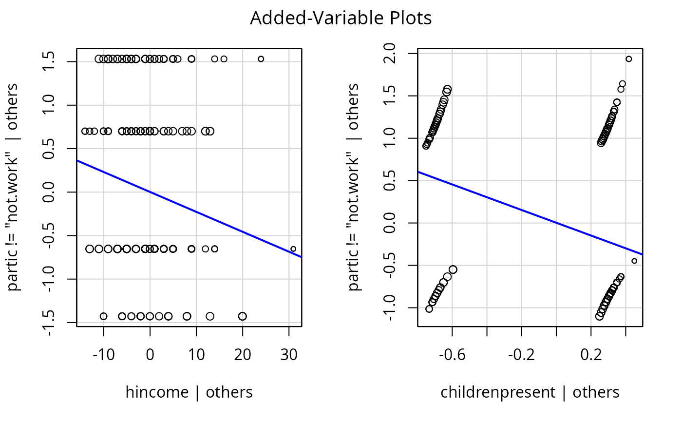 avPlots(glm(partic != "not.work" ~ hincome + children,