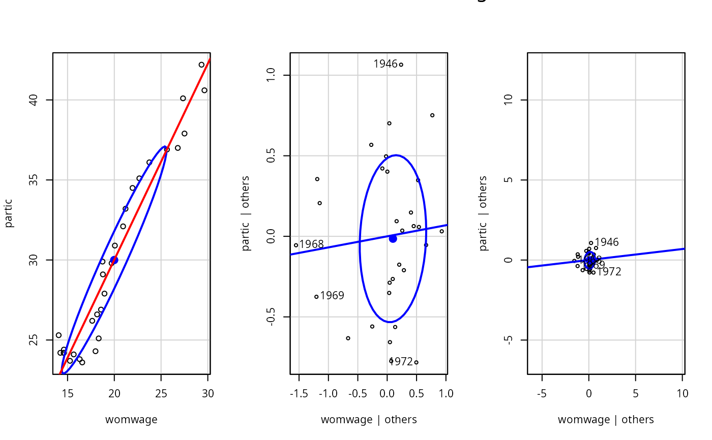 avPlots(m1, ~ womwage, ellipse=list(levels=0.5))