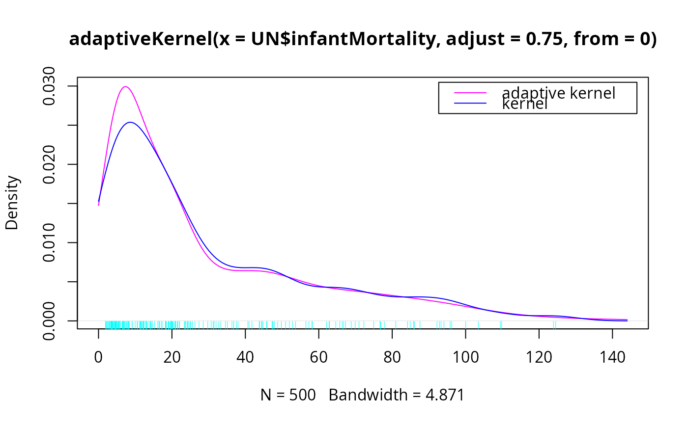 legend=c("adaptive kernel", "kernel"), inset=0.02)