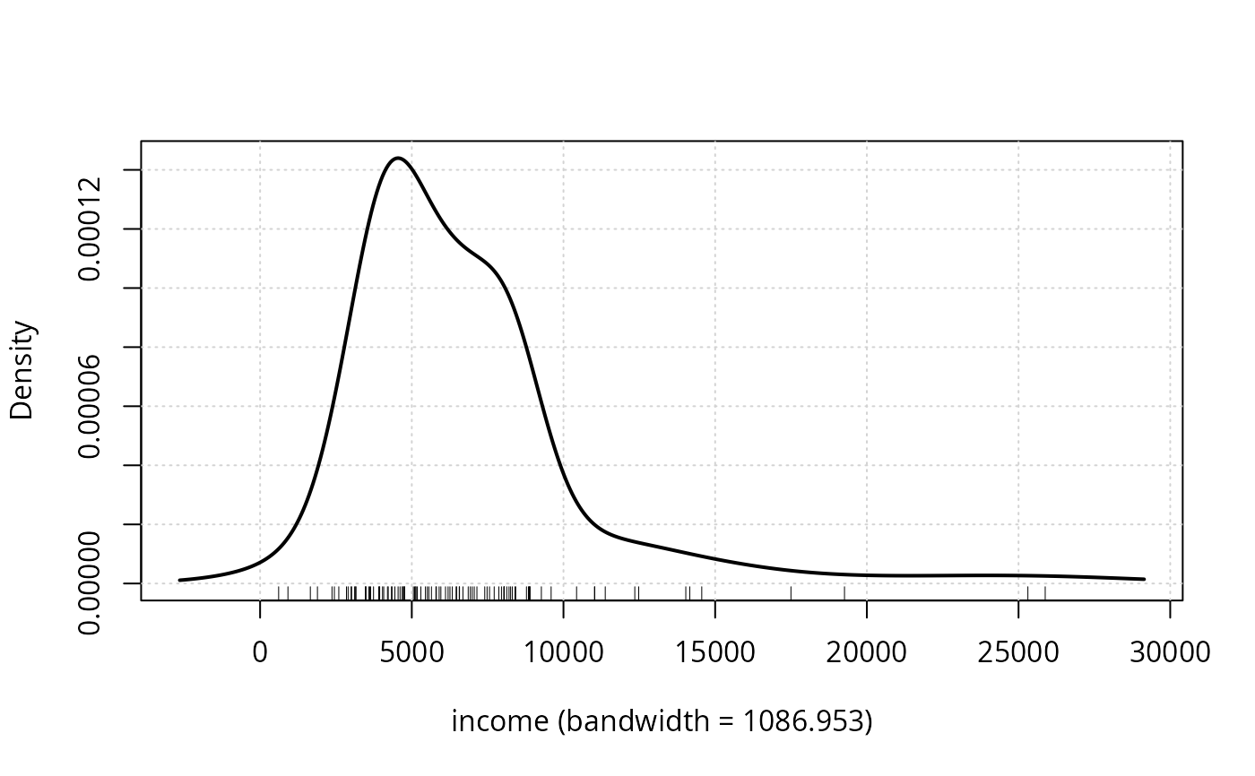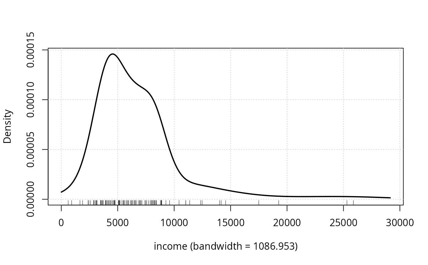 densityPlot(~ income, show.bw=TRUE, data=Prestige)