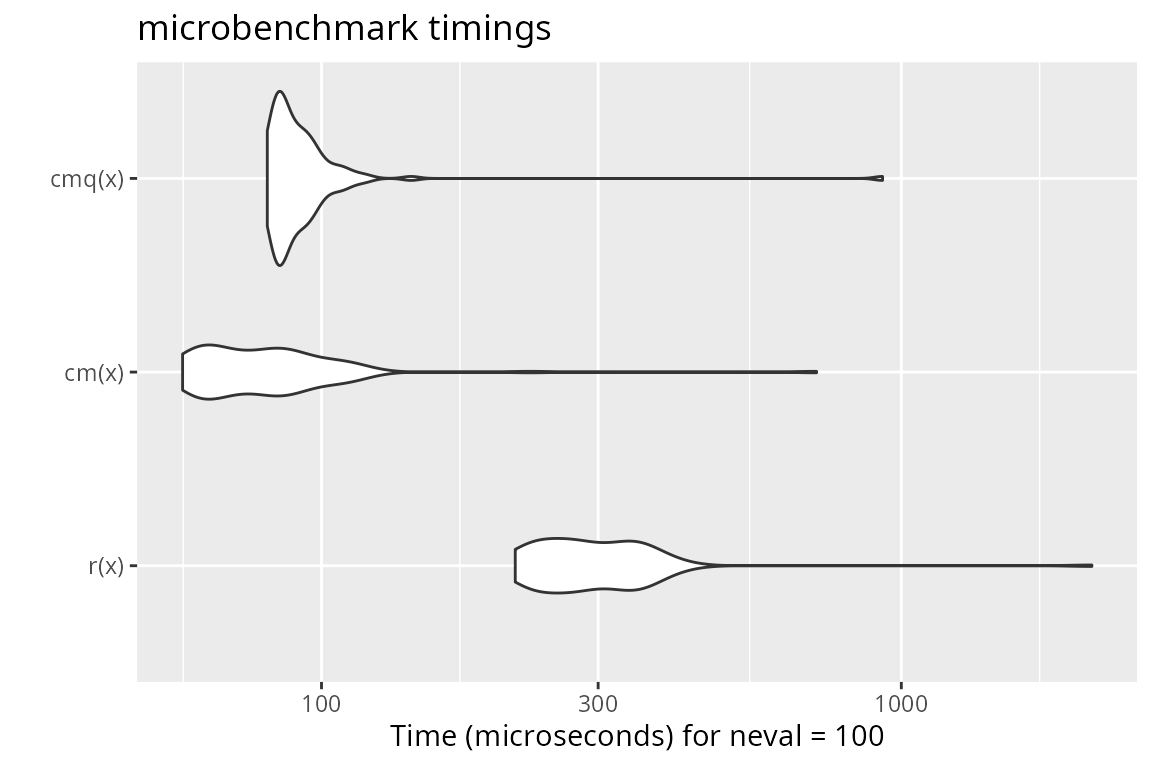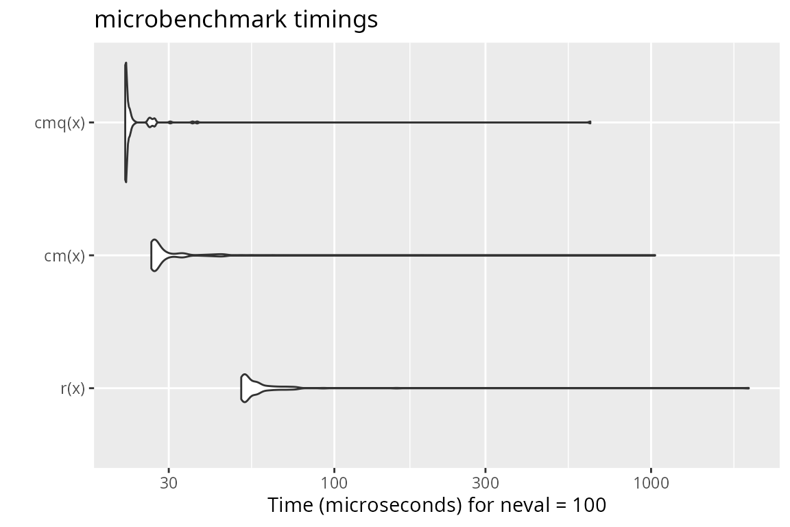 mb = microbenchmark(r(x.sexp), cm(x.sexp), r(x.altrep), cm(x.altrep))