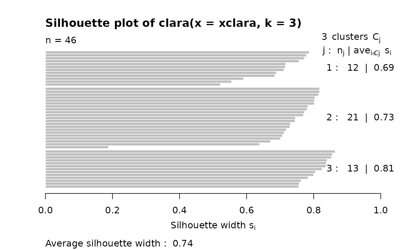 an object of class "clara" representing the clustering. See