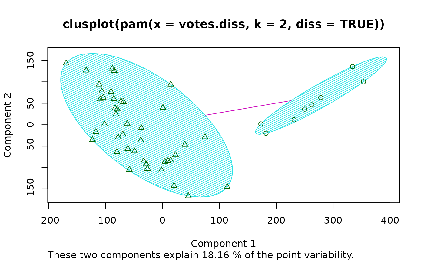pamv <- pam(votes.diss, 2, diss = TRUE)