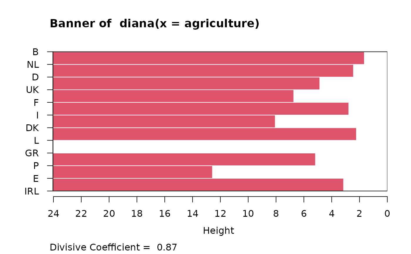 #> diana> ## Not run: plot(diana(agriculture), ask = TRUE)