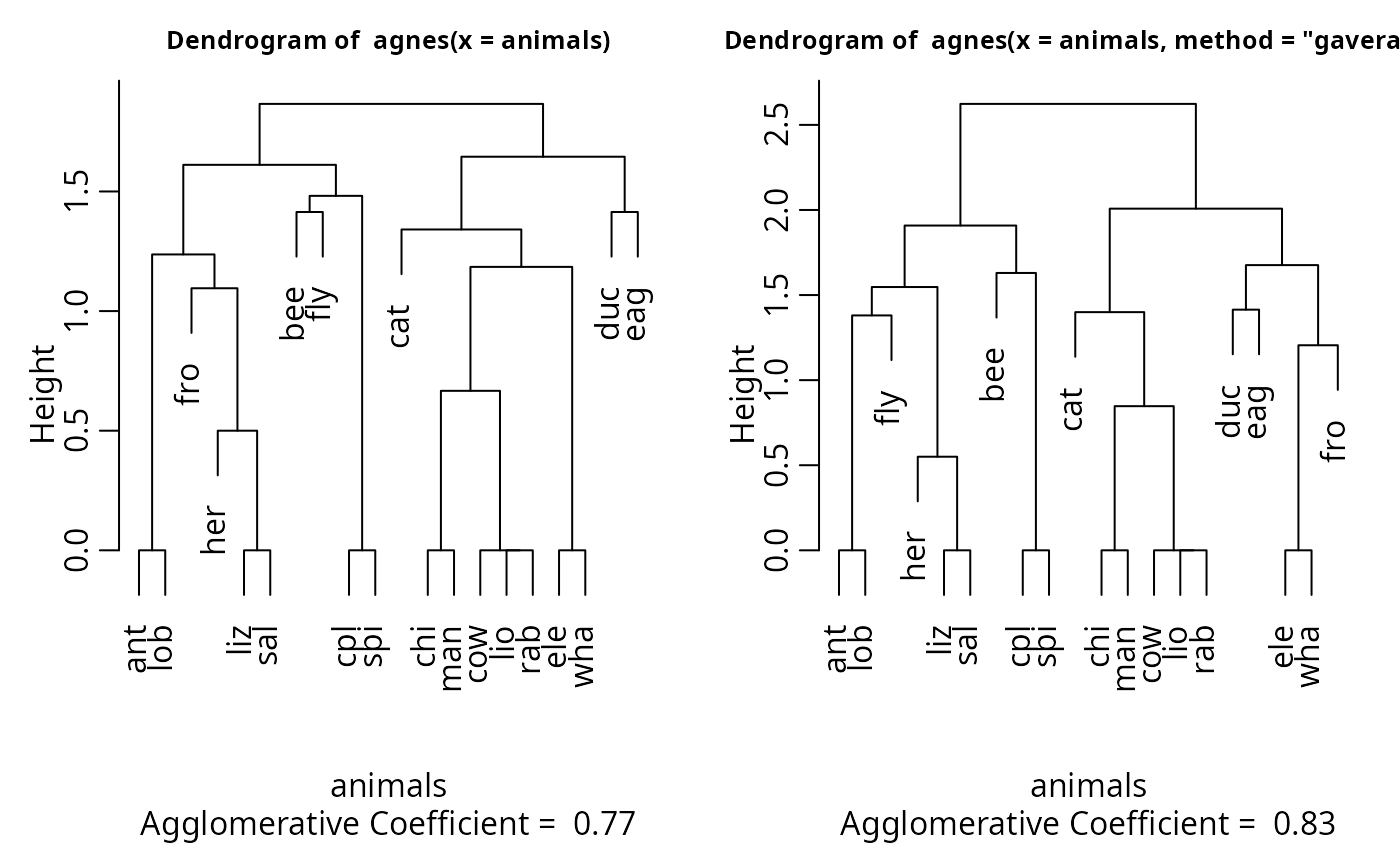 aa.ga <- agnes(animals, method = "gaverage")