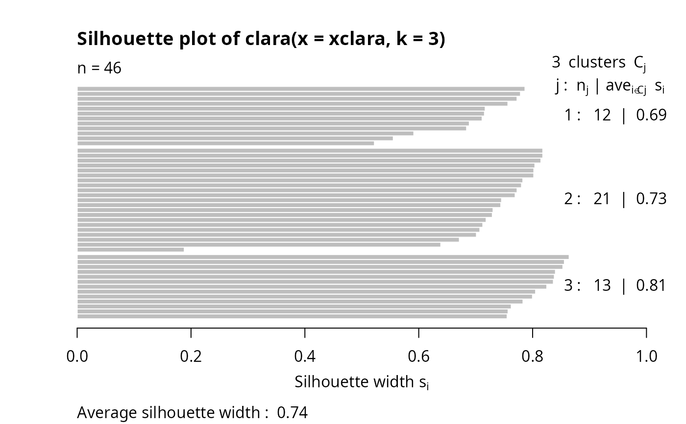 an object of class "clara" representing the clustering. See