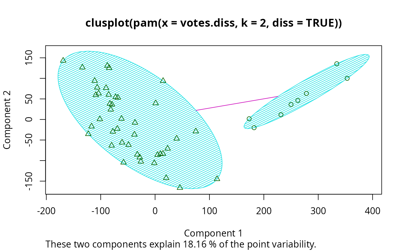 pamv <- pam(votes.diss, 2, diss = TRUE)