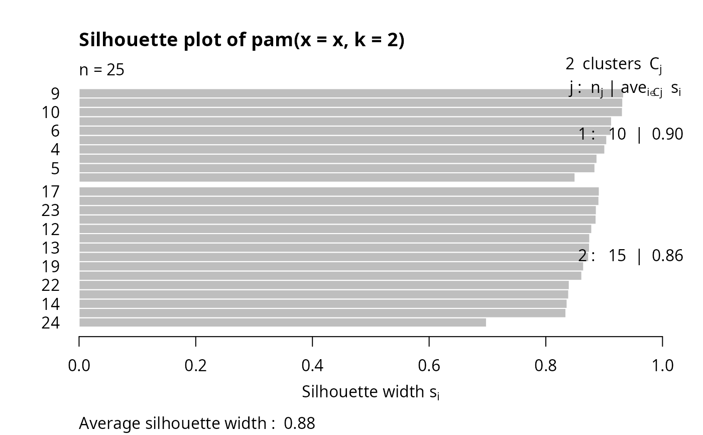 stopifnot(identical(pamx$clustering, rep(1:2, c(10, 15))))