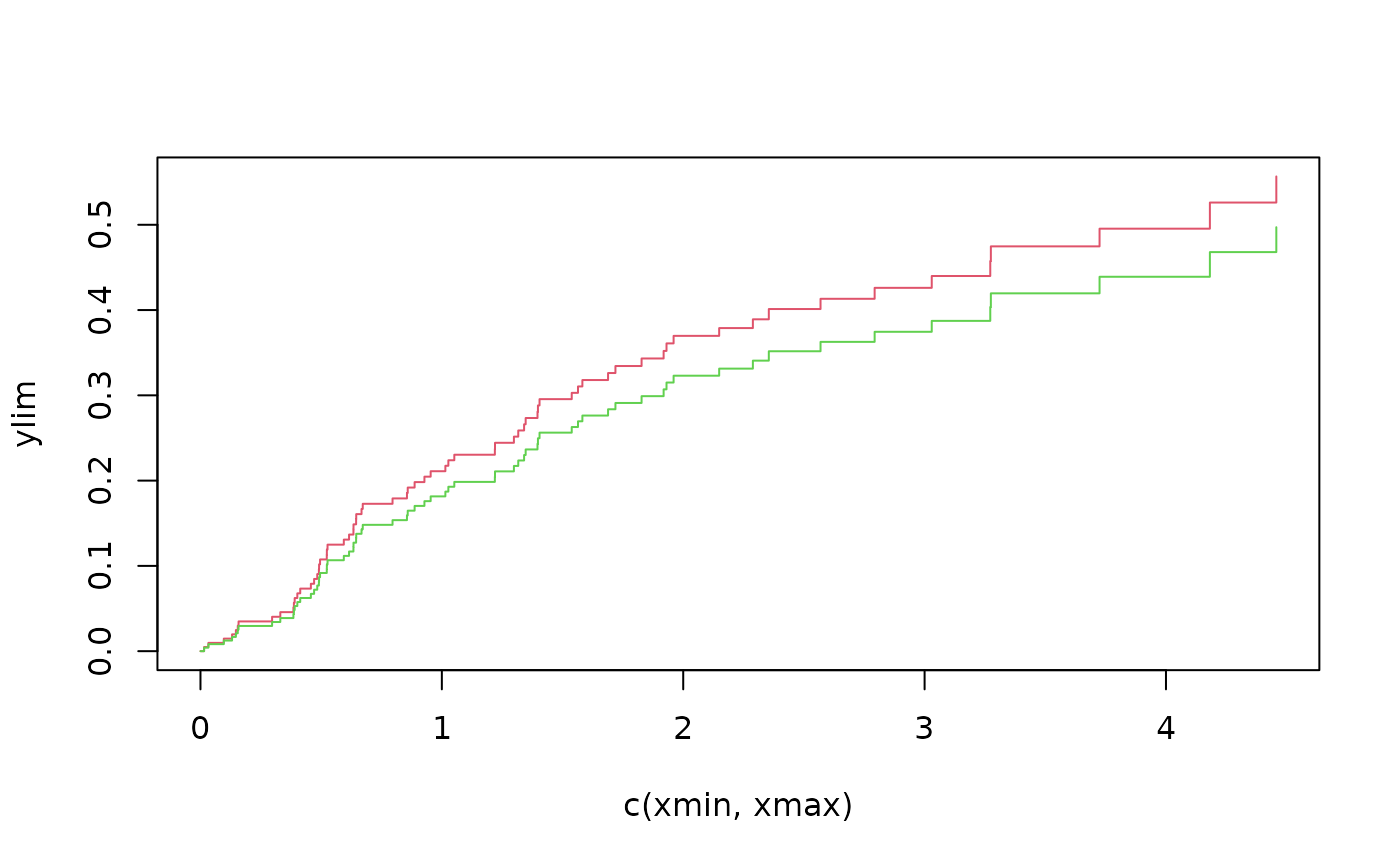 #> crr(ftime = ftime, fstatus = fstatus, cov1 = cov)
