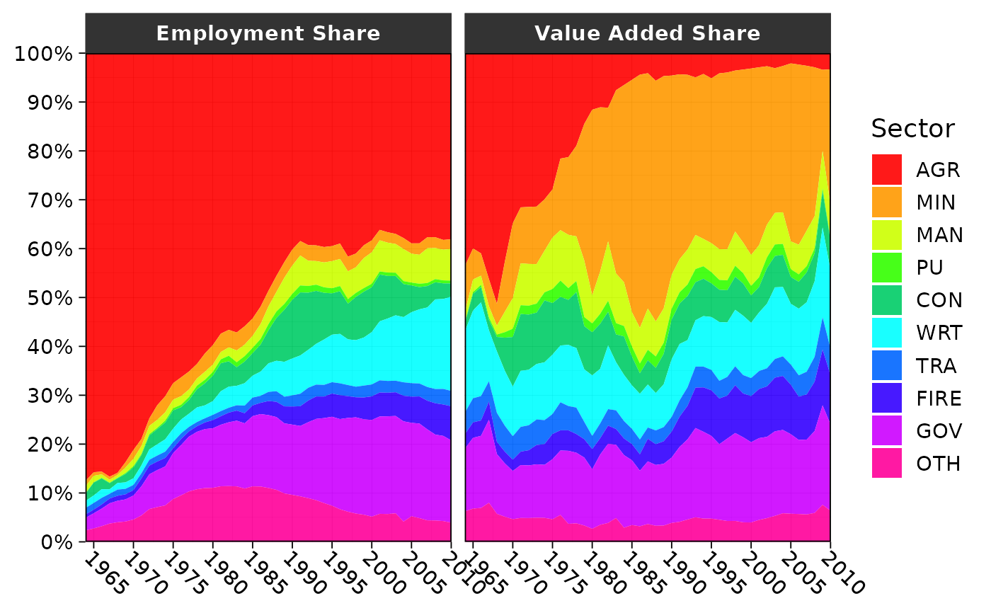 Timmer, M. P., de Vries, G. J., & de Vries, K. (2015). "Patterns of Structural Change in Developing Countries." . In J. Weiss, & M. Tribe (Eds.), Routledge Handbook of Industry and Development. (pp. 65-83). Routledge.