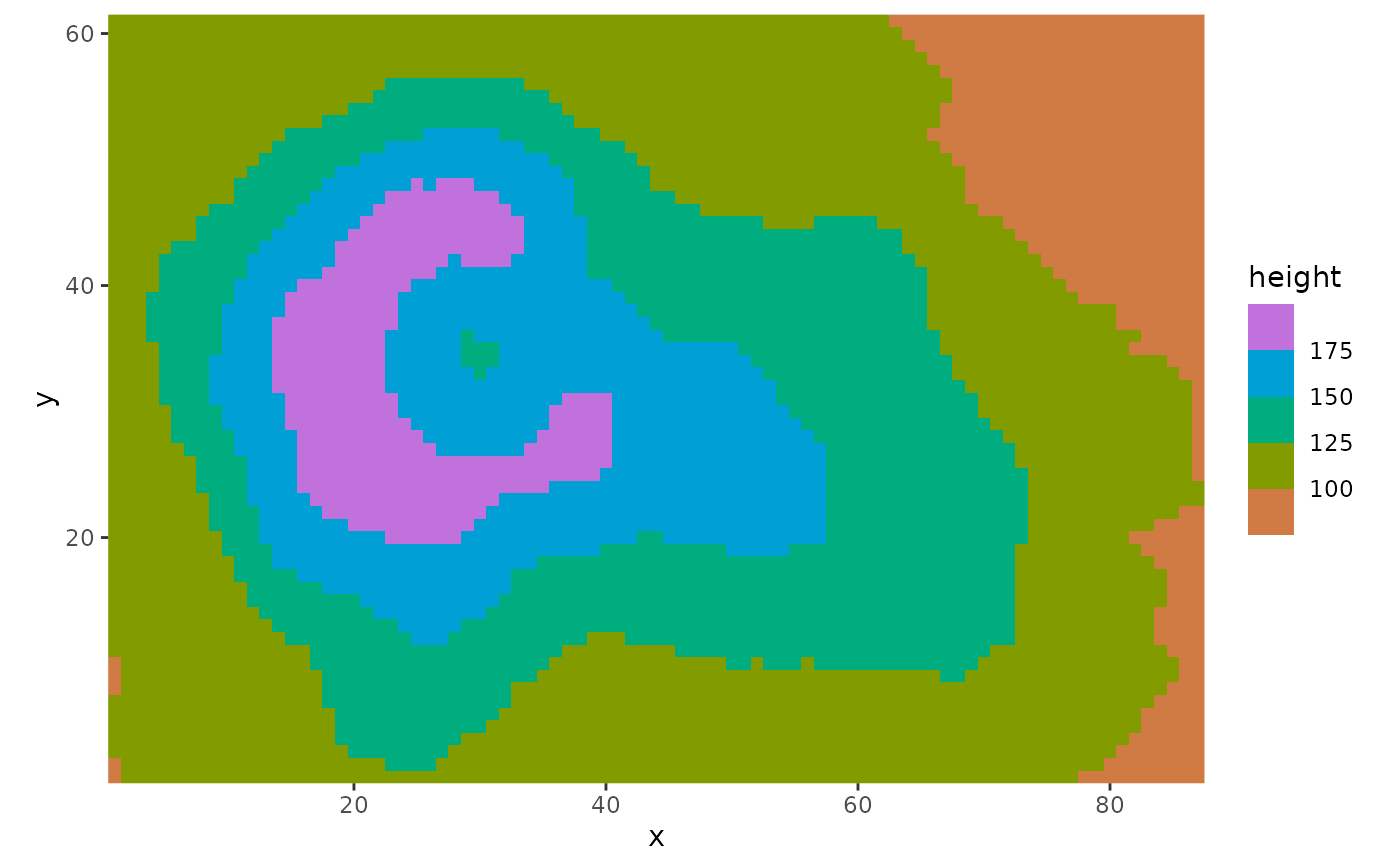 df <- data.frame(height = c(volcano), x = rep(1:nx, ny), y = rep(1:ny, each = nx))