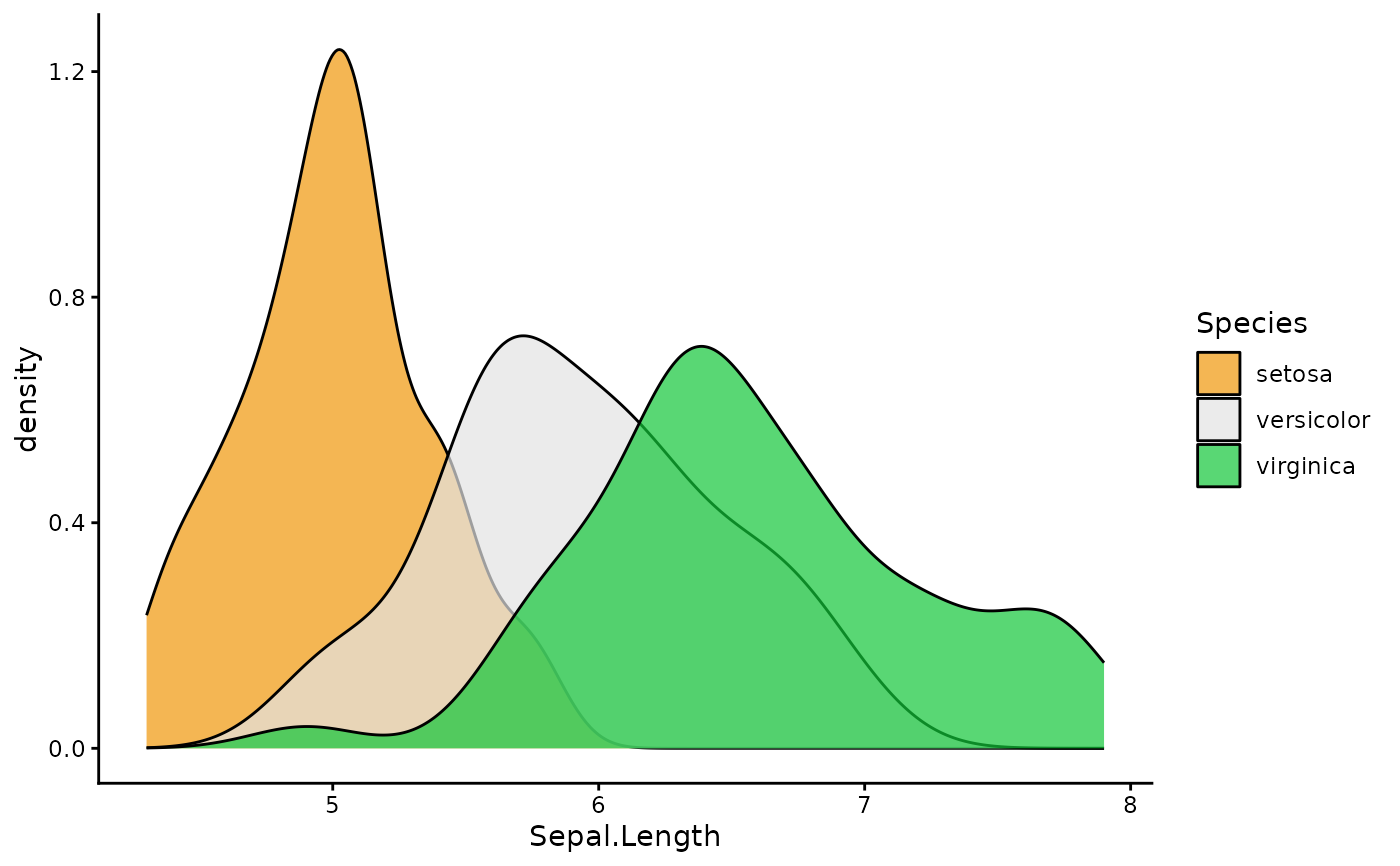 ggplot(iris, aes(Sepal.Length, fill = Species)) +