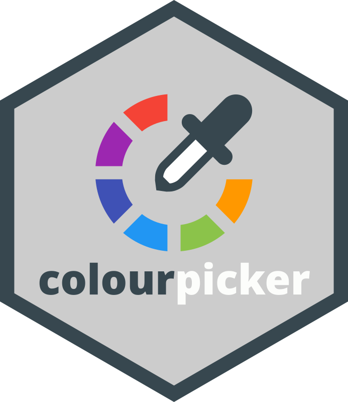 The most common uses of {colourpicker} are to use the colourInput() function to create a colour input in Shiny, or to use the plotHelper() function/RStudio Addin to easily select colours for a plot.