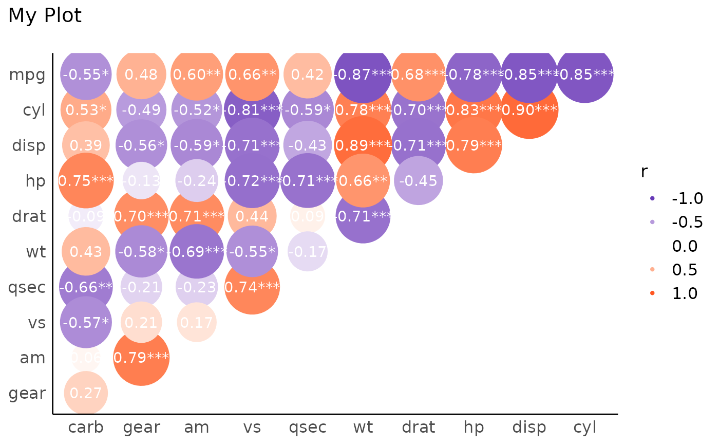 visualisation_recipe.easycormatrix.RdObjects from the correlation package can be easily visualized. You can
