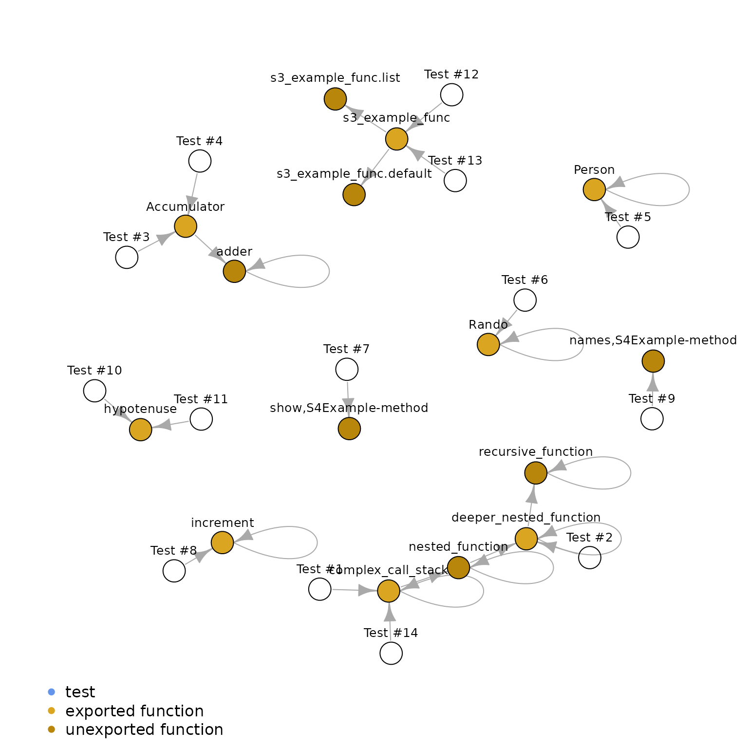 #> 6 Example R6 Rando class active field functions are traced Test #6Finally, we can plot this network of test executions:
