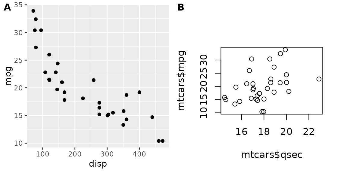 p2 <- ggplot(mtcars, aes(qsec, mpg)) +