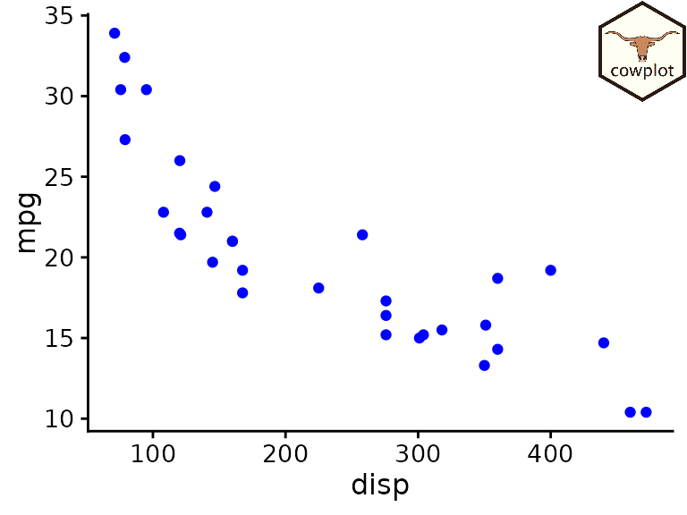 p <- ggplot(mtcars, aes(disp, mpg)) +