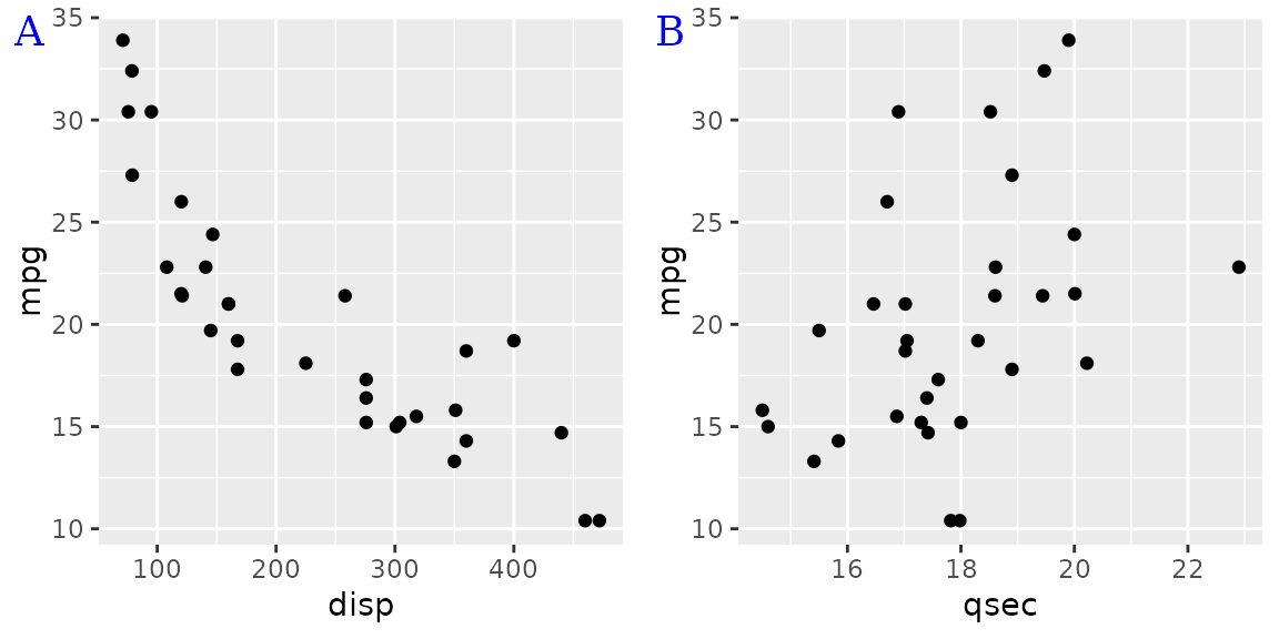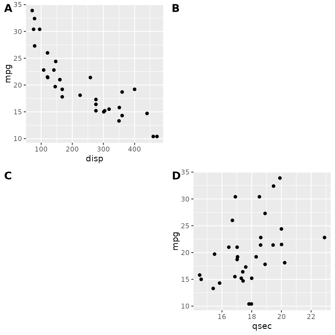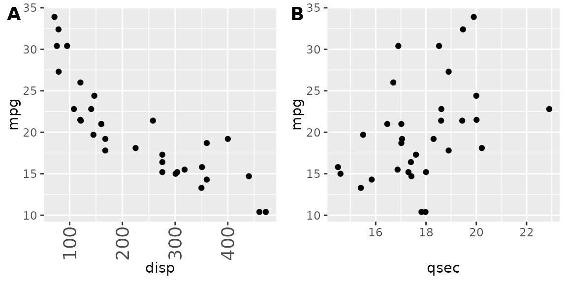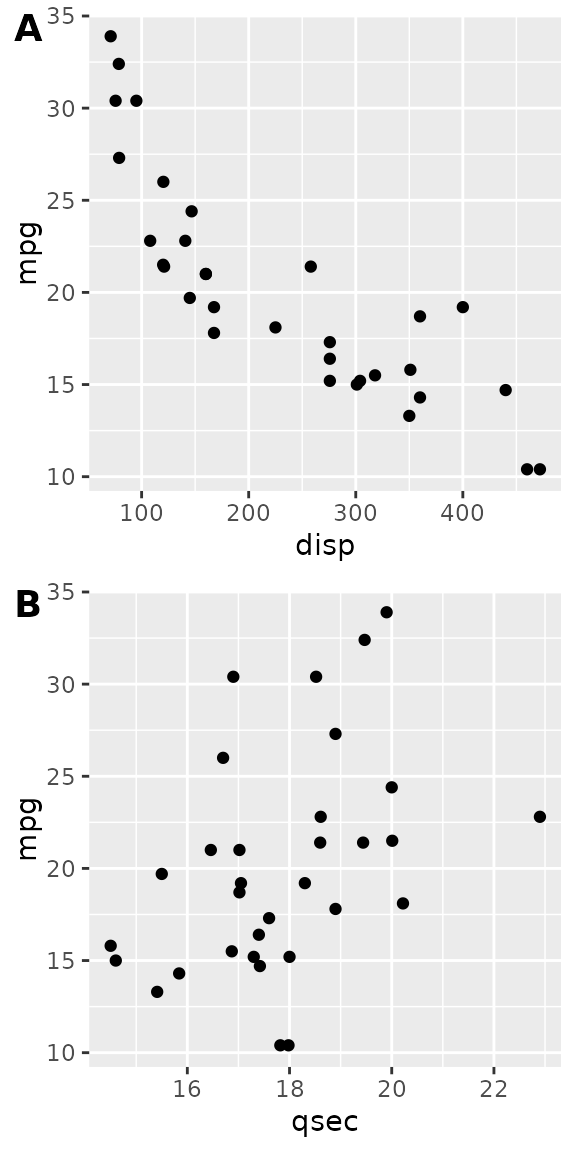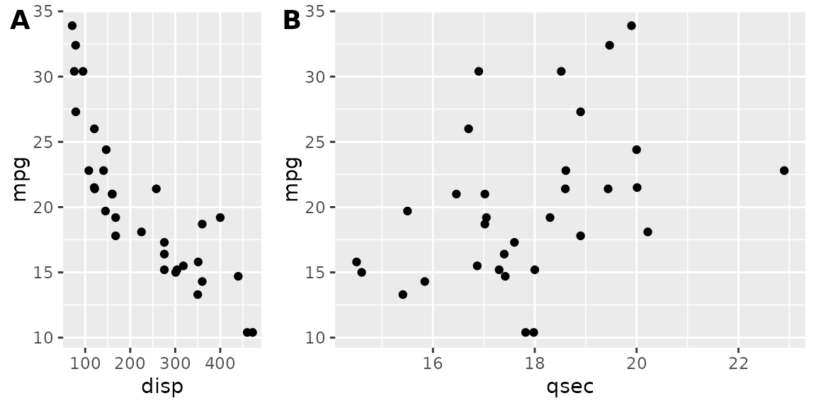 p2 <- ggplot(mtcars, aes(qsec, mpg)) +