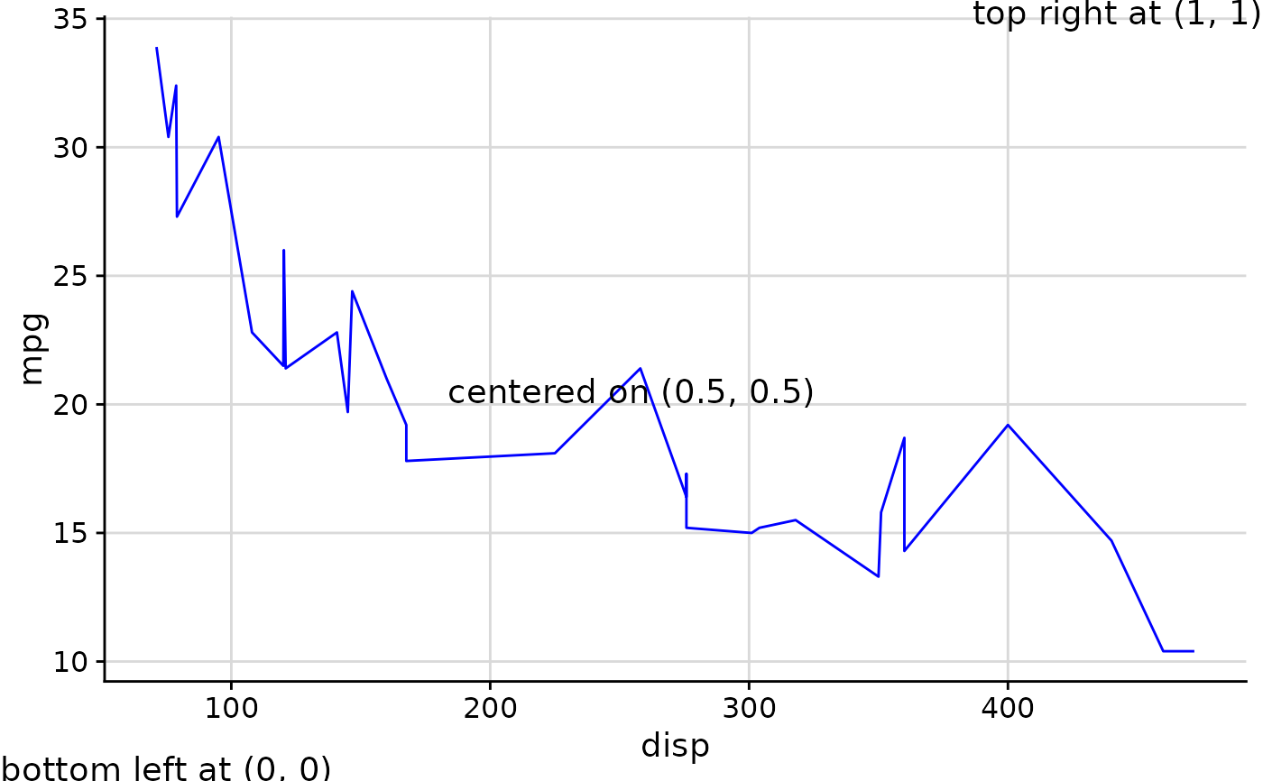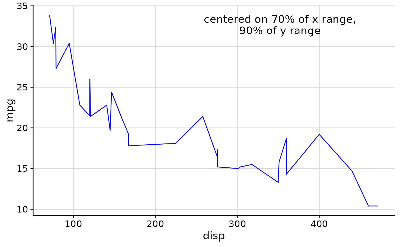 draw_label("centered on 70% of x range,\n90% of y range", x = 0.7, y = 0.9)