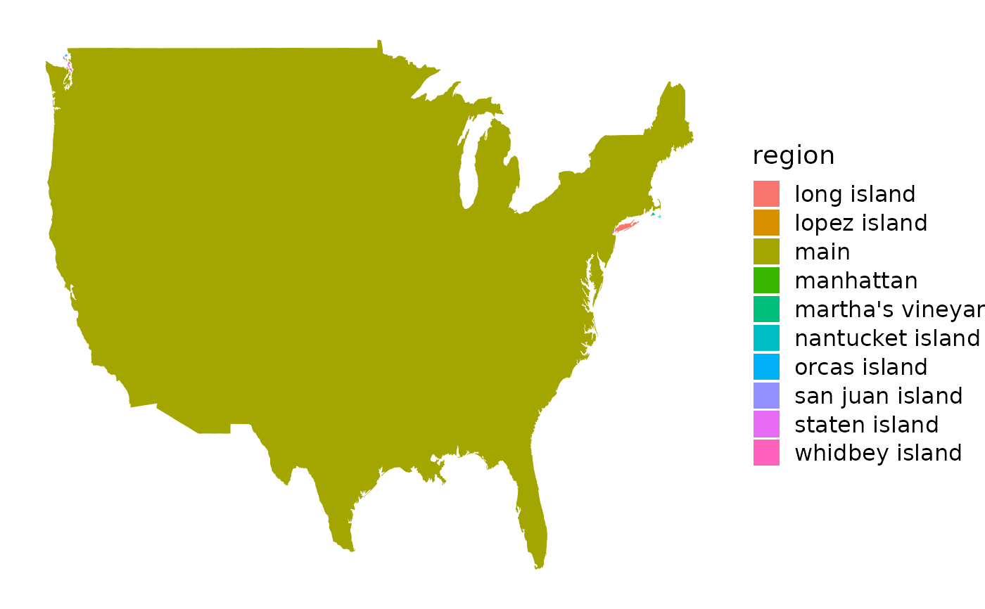 ggplot(usa_data, aes(long, lat, fill = region)) +
