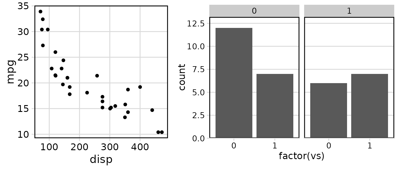 p2 <- ggplot(mtcars, aes(factor(vs))) +