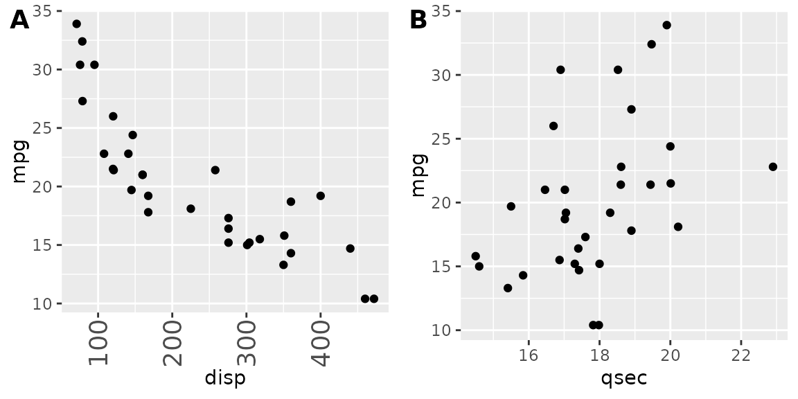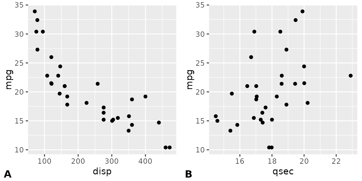 The plot_grid() function provides a simple interface for arranging plots into a grid and adding labels to them.