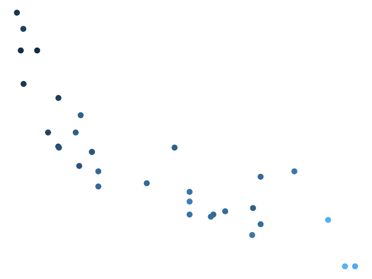 p <- ggplot(mtcars, aes(disp, mpg)) + geom_point()