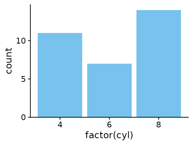 p <- ggplot(mtcars, aes(factor(cyl))) +