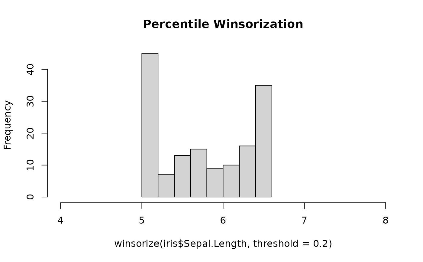 hist(winsorize(iris$Sepal.Length, threshold = 0.2),