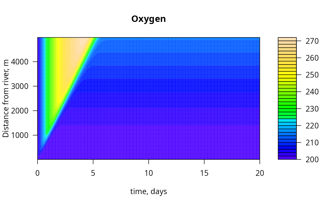 image(out, grid = x, xlab = "time, days", ylab = "Distance from river, m")