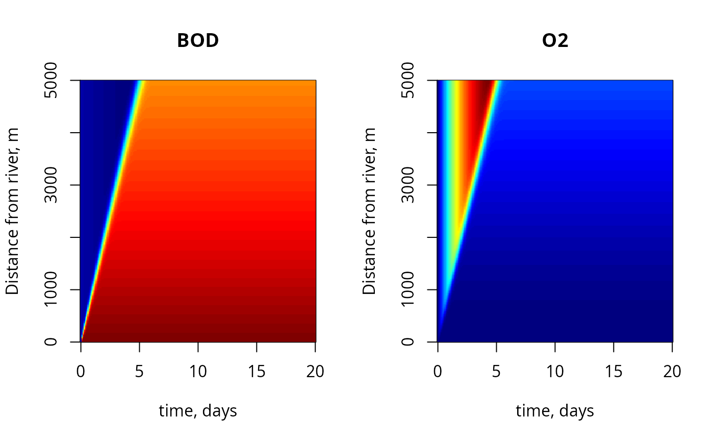 FluxBOD <- v * c(BOD_0, BOD) # fluxes due to water transport