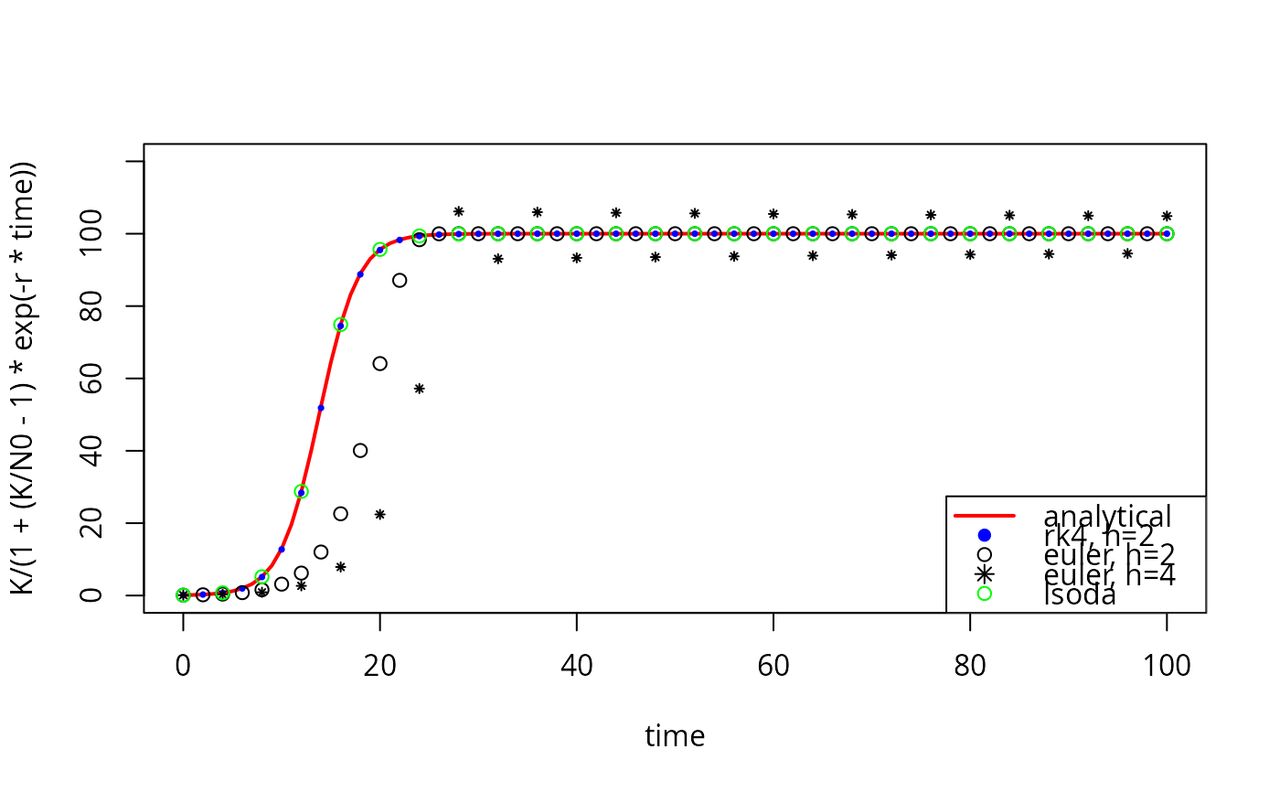 out <- as.data.frame(rk4(x, time, logist, parms))