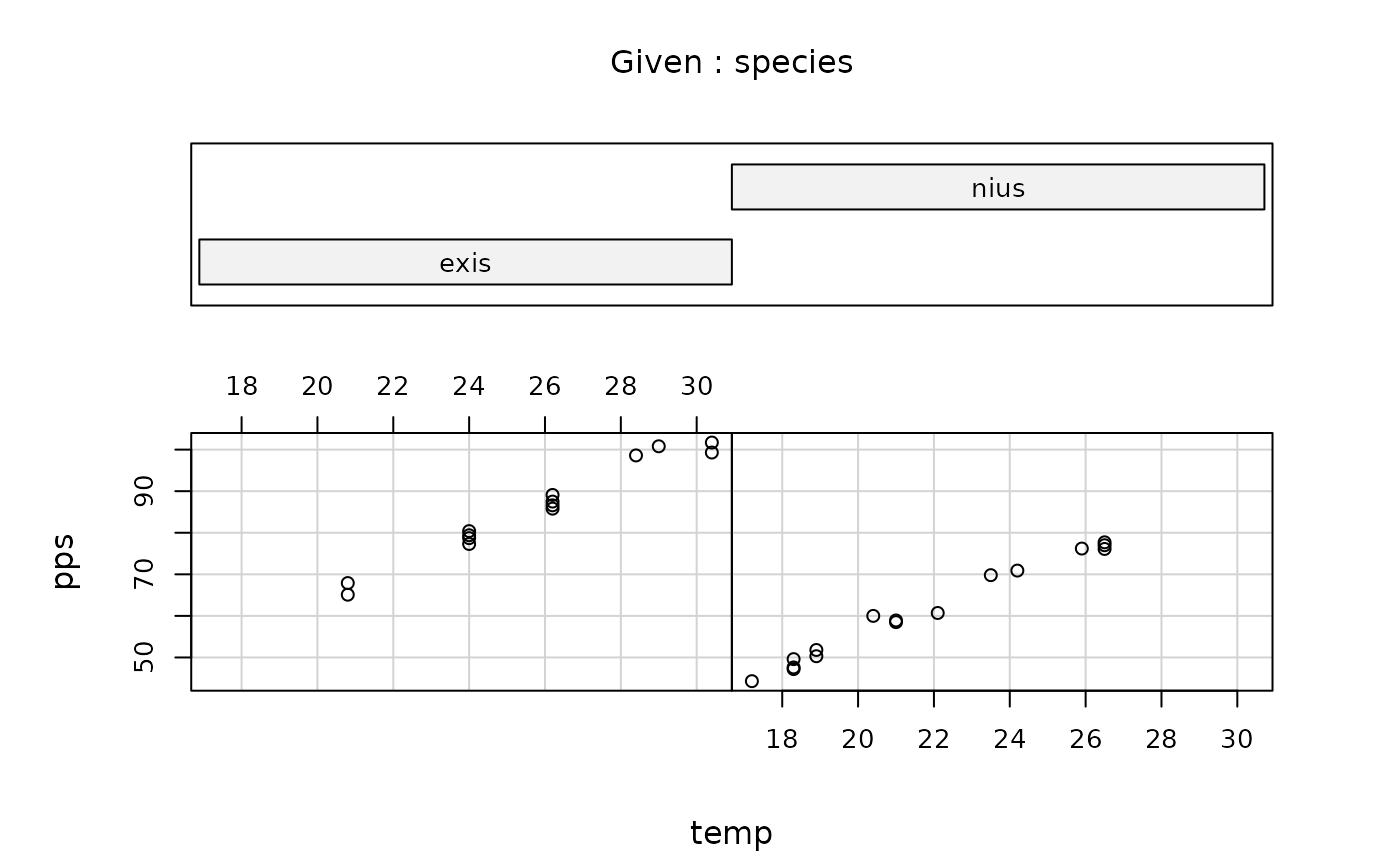 (variable pps) at a variety of temperatures (temp):