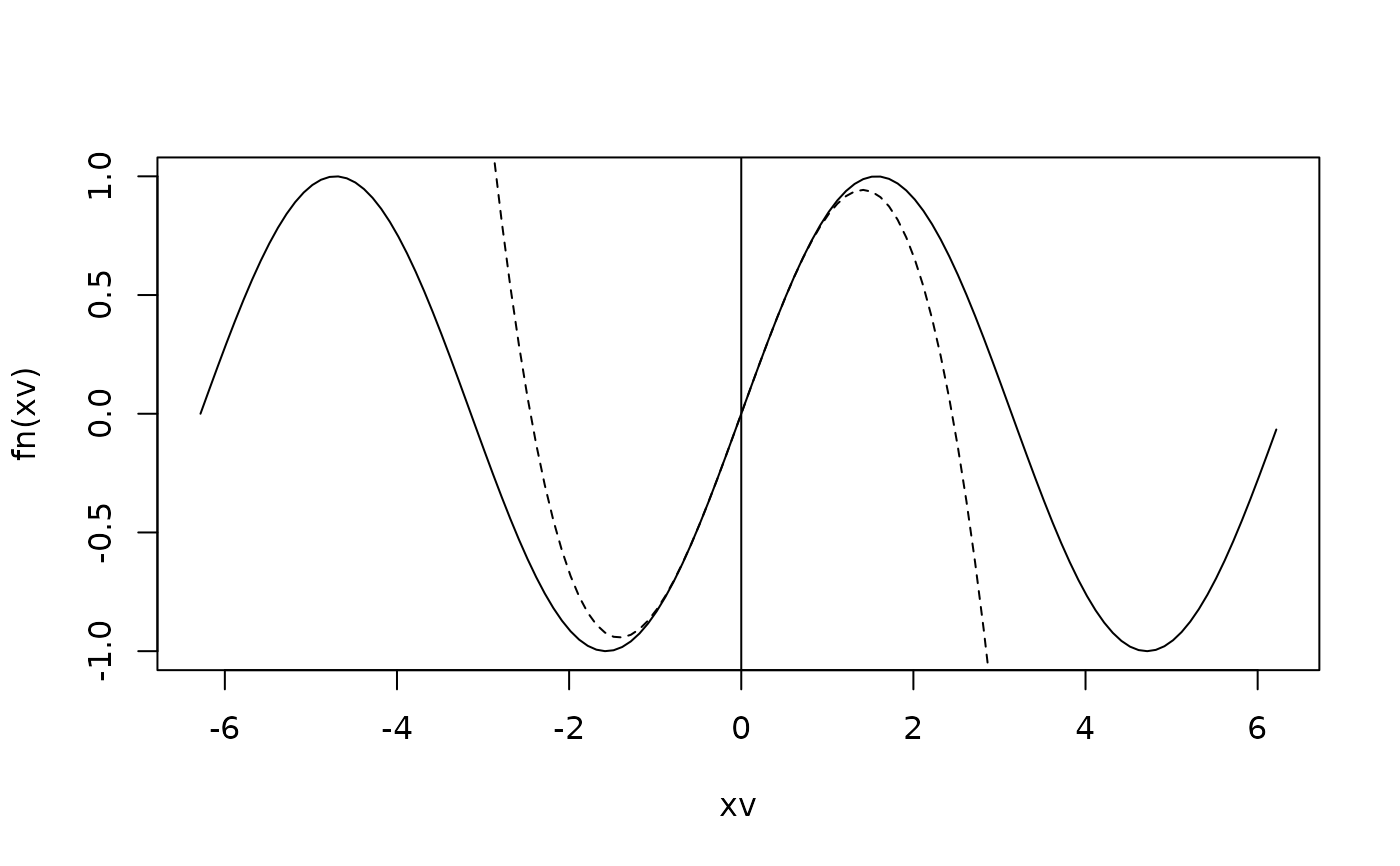 lines(xv, taylor(fn, x0=x0, ord=ord)(xv), lty=2)