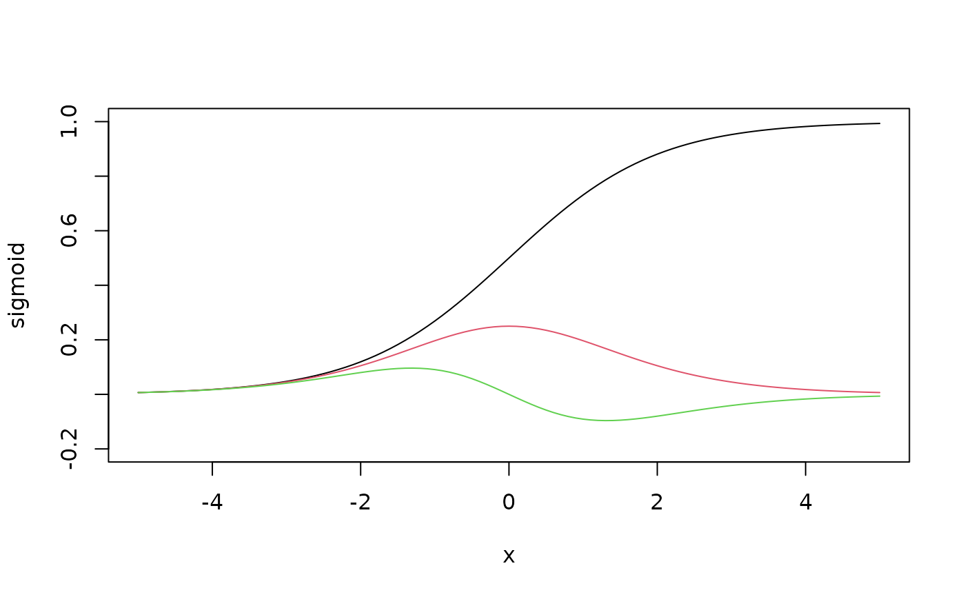 plot(d2sigmoid, -5, 5, add = TRUE, col = 3)