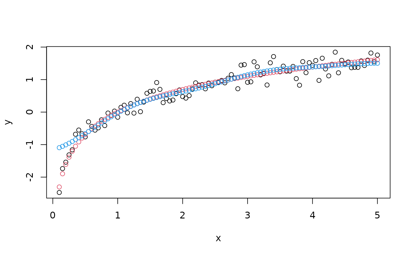 m <- svm(y ~ x, scale = FALSE, kernel = "linear")