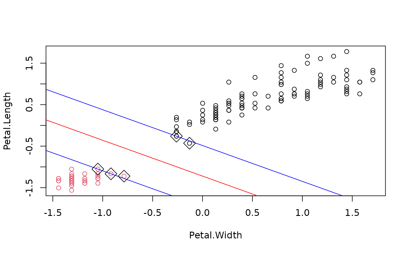 m <- svm(setosa ~ Petal.Width + Petal.Length,