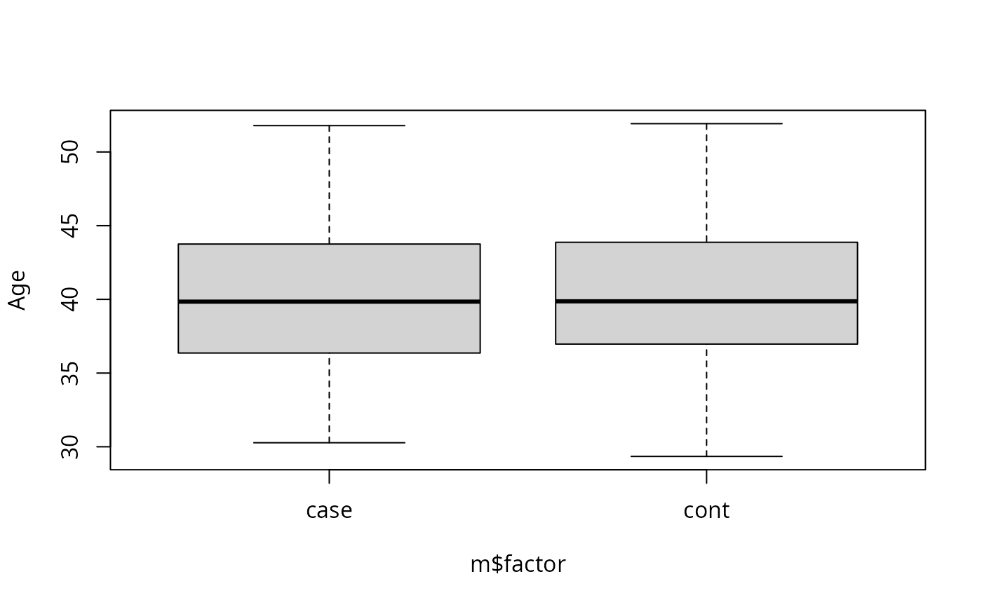 m <- matchControls(casecont ~ Sex + Age)