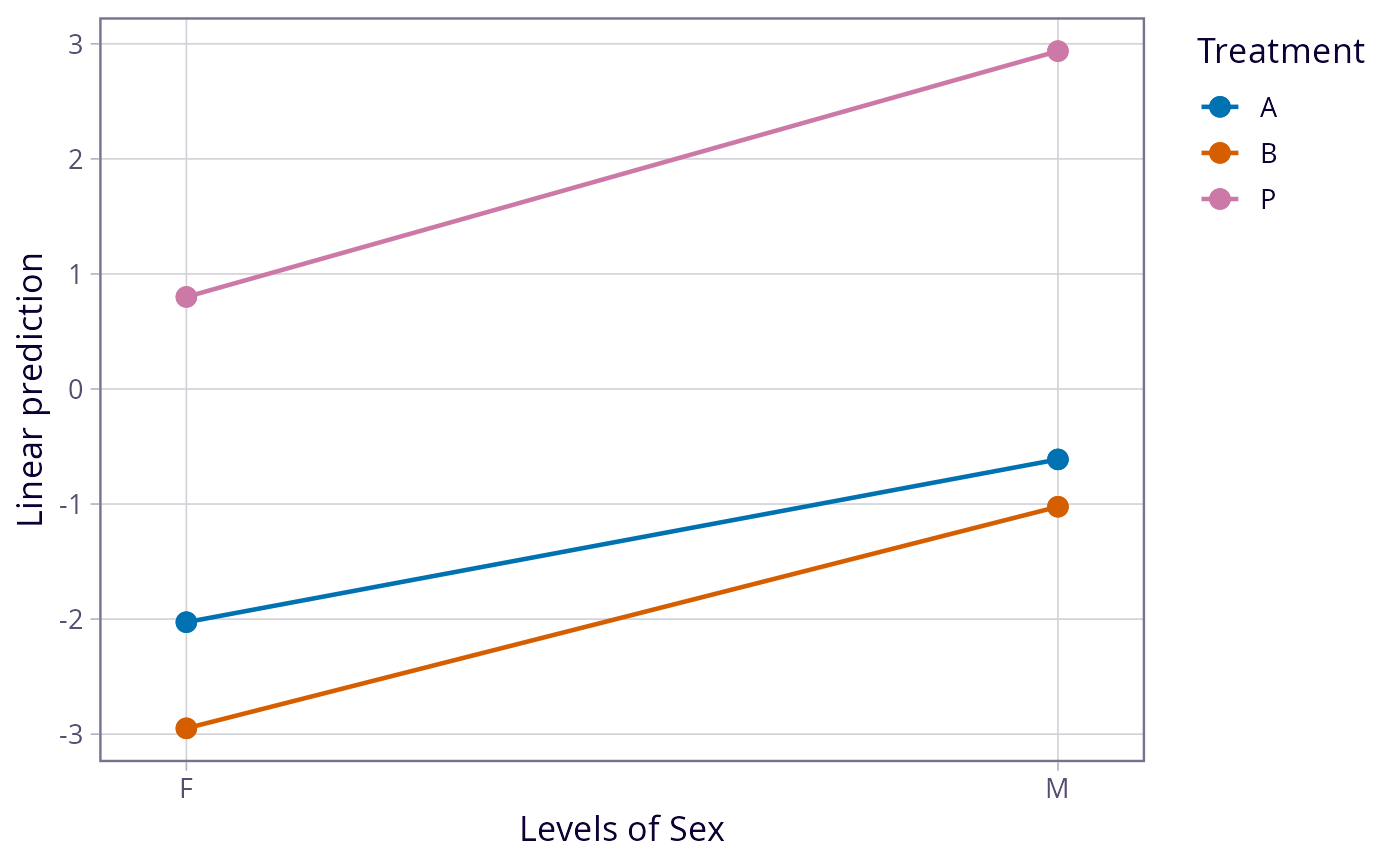 emmip(neuralgia.glm, Treatment ~ Sex)